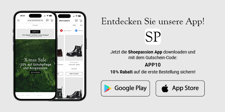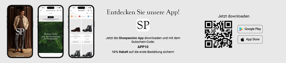 Through our online shop, we are available to you around the clock. You can experience us and our diverse range of men's shoes in numerous colors up close in our exclusive Shoepassion shoe stores in Berlin, Frankfurt am Main, and Bietigheim-Bissingen. Our knowledgeable staff is happy to assist you in determining your shoe size, including a digital measurement of your feet, give you tips on proper care for your men's shoes, or provide you with advice and support for the right occasion combination.